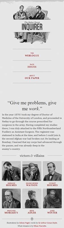 他制作了一个范例,里面是《福尔摩斯历险记》六个主人公的头像。如果屏幕宽度大于1300像素,则6张图片并排在一行。